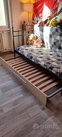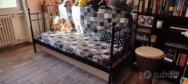 Vendo bellissimo letto singolo nero con due materassi mai usati e due doghe, di cui una con ruote, aggiungendo così un' ulteriore letto singolo.