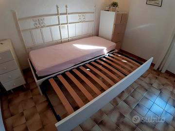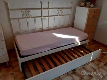 DA RITIRARE SUL POSTO (vicinanze Arzachena). Divano letto singolo con letto estraibile, misure cm. 197 x 87, colore bianco-panna, munito di n. 1 materasso singolo. Entrambe le reti sono a doghe, in perfette condizioni.