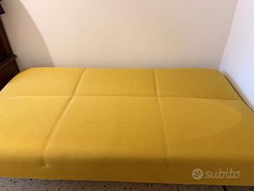 Vendo causa trasloco divano letto color senape contenitore. Dimensione 190x83 cm. Diventa divano letto singolo ampio come da foto. Ritiro a carico dell’acquirente a Terni centro.