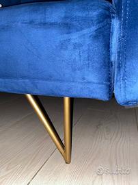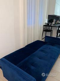 Bellissimo divano letto color blu brillante con piedini color oro 🛋️. Divano da design che da solo fa arredamento e ravviva la stanza. Svendo a € 199 per cambio casa 🏠. Comodo e trasformabile con un semplicissimo gesto in un letto da una piazza e mezza. ATTENZIONE: purtroppo le foto non gli rendono giustizia… Non ci sono graffi né macchie, dalle foto sembra ci siano aloni ma solo perché il tessuto è in velluto. Qualsiasi prova e possibilità di visione senza impegno. Misure: 192 cm lunghezza x 92 cm profondità .