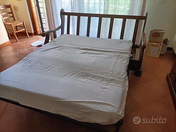 Divano 3 posti a sedere stile rustico in legno cuscini tutti sfoderabili all’interno un letto matrimoniale con rete, materazzino e doghe in legno ottimi supporti in ferro a terra per mantenere il letto stabile