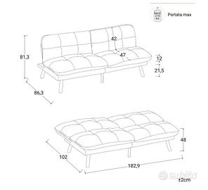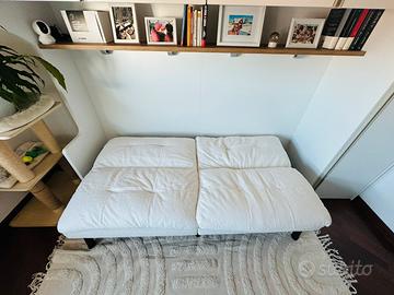 Divano letto in tessuto bouclé, come nuovo, con piedini in metallo nero. Sistema letto clic-clac. Misure: 180 x 95 cm Altezza schienale: 70 cm Altezza seduta: 40 cm Perfette condizioni. Praticamente nuovo mai usato, acquistato a dicembre.