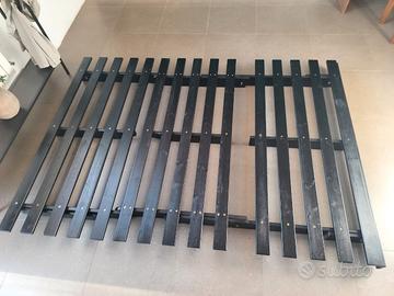 Divano letto stile futon a doghe in legno massello wengé marrone scuro/nero. Può essere utilizzato come letto cm 190 x 140 x h cm 10 oppure come lounge bed da esterno tenendo alzato lo schienale e/o la parte dei piedi oppure si può utilizzare come divanetto l 140 cm.