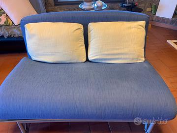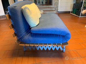 Vendo divano letto tira e molla con materasso matrimoniale in lattice blu sfoderabile e lavabile con doghe in legno. Misure: 190cmX130cm due posti Usato ma in ottime condizioni per cambio abitazione.