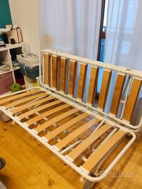 Divano letto IKEA, misure standard, si dorme in due, corredato di copridivano e materasso in buone condizioni