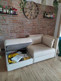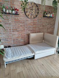 Divano letto 1 piazza in ecopelle formato da parte fissa con 2 cuscini e 2 schienali +1 pouf contenitore..