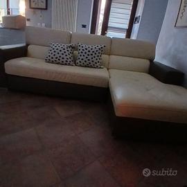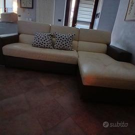 vendi divano letto in vera pelle tenuto benissimo lungo 2.60m largo 1.70 dalla parte della chaise loungue che è anche un capiente contenitore ..la parte della seduta misura 90 e diventa un letto tirando la parte sottostante munita di rotelle