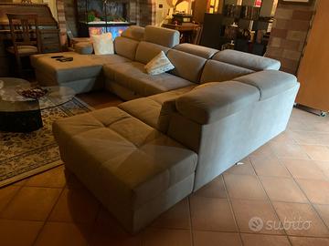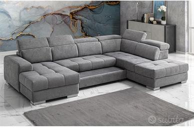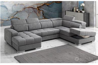 Divano letto (meccanismo estraibile) doppio angolo con pouf contenitore destro e penisola sinistra L331xP230xH94. Rivestimento fibra Taupe