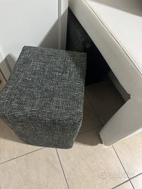 Divano letto tre posti con chaiselongue dx contenitore piu’ due puf poggia piedi.