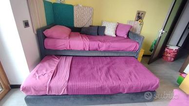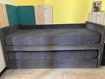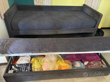 Divano letto Twils, con secondo letto e cassettone, completo di copriletti.