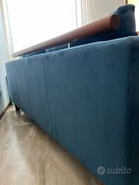 Vendiamo divano letto usato , con rivestimento in microfibra blu , tutti i cuscini sono sfoderabili favorendo una corretta pulizia. Il divano è lungo 193 cm e profondo 92 cm. Il divano presenta segni di usura ma è completamente funzionante.