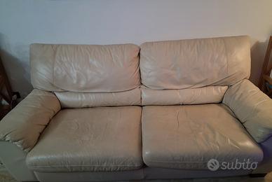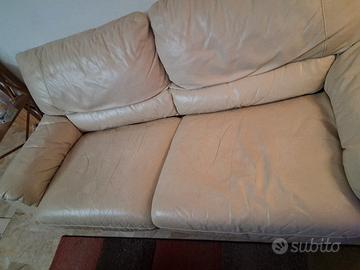 Divano/letto in vera pelle,color panna,da 3 posti,con 2 sedute 210cm×90 Segni di usura sulle sedute
