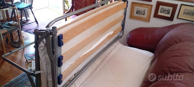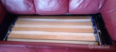 Vendesi divano letto da una piazza e mezzo in vera pelle, color bordeaux, con materasso fatto fare su misura e molto comodo.