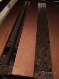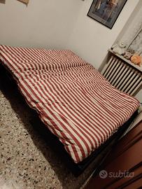 vendo divano letto rivestimento a righe beige/bordeaux, rete a doghe di faggio.