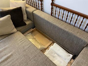 Vendo causa trasloco divano letto con penisola e contenitore lungo 2,50 e profondo 1,50 nella parte della penisola. Per informazioni inviare una mail o telefonare in ore serali dopo le 19.00 Prezzo trattabile