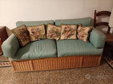 Divano letto in vimini, cuscini sfoderabili. 165 cm. Ritiro a Firenze zona le Cure.