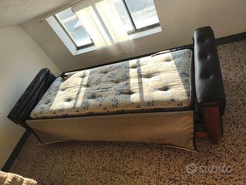 Vendo affascinante divano letto a tre posti con un marcato design vintage (anni '70/'80). Ottimo per salotti, stanze ospiti o studi. Design e Struttura: Esterno: Solida struttura in legno scuro a vista e braccioli imbottiti in ecopelle (o similpelle) nera con dettagli capitonné (bottoni). Seduta: Cuscini in tessuto fantasia, sfoderabili. Vantaggio: Il letto si apre e chiude all'interno dell'ingombro del divano (non si allunga in avanti!). Dimensioni Totali (Divano Chiuso): Lunghezza Totale (L): 222 cm Profondità Totale (P): 82 cm Altezza Totale (A): 76 cm Dettagli Letto Integrato: Misura Materasso: 189 x 65 x 10 cm (È un letto singolo stretto/lettino da studio). Condizioni Importanti: La struttura in legno e il meccanismo letto sono solidi. Il rivestimento in ecopelle dei braccioli presenta normali segni d'usura. NOTA BENE: Il rivestimento interno in similpelle del vano letto (sotto il materasso) presenta una spaccatura/taglio come mostrato in foto. Questo non compromette la funzionalità del letto ed è coperto dal materasso. 🚚 Ritiro e Pagamento Ritiro e Accesso: Ritiro a carico dell'acquirente in zona Biella, Via Ugo Macchieraldo. Stato Mobile: Il divano è in un pezzo unico e non è smontabile. Logistica: Ritiro dalla soffitta. Ascensore fino al 5° piano, poi un piano a piedi (scale). L'acquirente deve provvedere a mezzi e personale per carico e movimentazione. Modalità di Pagamento: Si richiede pagamento prima o al momento del ritiro. Si predilige il Bonifico Bancario (istantaneo o ordinario) in quanto metodo tracciabile e sicuro. Contanti accettati solo sotto i € 50,00.