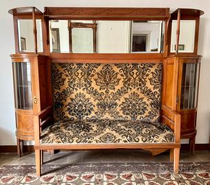 Divano epoca Liberty con 8 comodissime poltroncine, integre ma con imbottitura da restaurare. Misure del divano 224x65x180h. Possibilità di acquistare solo le poltroncine o solo il divano. Ultimo prezzo, non negoziabile. Si prega di non insistere.