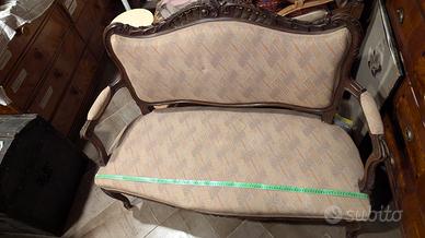 Divano Liberty in legno di noce con tappezzeria rifatta