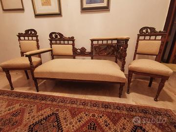 Vendesi divano liberty italiano originale dei primi del '900 in noce + due sedie in corredo.
