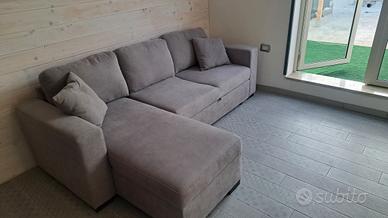 Divano letto angolare con penisola reversibile. Contenitore con meccanismo estraibile. Tessuto MLK Silver. Praticamente nuovo. cm 231x149x58 pagato 6 mesi fa € 500 rivediamo oggi 320 NUOVO