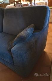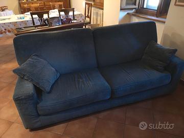 Vendo divano tre posti rivestito in tessuto completamente sfoderabile, colore blu chiaro, usato in ottimo stato