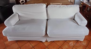 Divano di ampie dimensioni, struttura in legno resistente, rivestimento bianco sfoderabile. Vendo perché gia in possesso di un altro divano. Presenta una piccola macchia sul retro di un cuscino come da foto (smacchiabile).