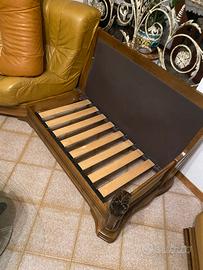 Divano in pelle e base in legno . La base è intatta , in legno e forma do calalli suo lati , presenta degli spacchi come in foto . Prezzo trattabile . Solo realmente interessti , rispondo preferibilmente whatsapp.
