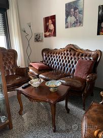 Vendo divano stile Luigi XIV in pelle in ottime condizioni. Possibile acquisto anche delle poltrone e tavolinetto. 190x97x110h cm