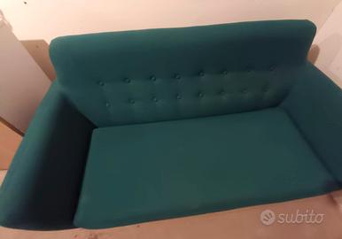 Divano Maison du Monde, color blu petrolio, due posti, con piedini in legno. Misure 82x75x166 cm