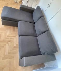 Vendo divano 4 posti Maison du Monde con chaise longue posizionabile sia a destra che a sinistra, colore grigio antracite in tessuto antimacchia.