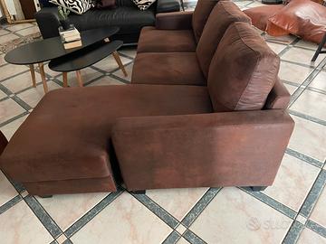 Philadelphie - Divano angolare con penisola a destra marrone in similpelle 3/4 posti