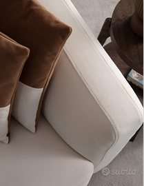 I cuscini del divano sono caratterizzati da un design sofisticato in bicolore una parte in ecopelle marrone, mentre l’altra parte è caratterizzata da un color beige . Questo contrasto sottile ma affascinante aggiunge profondità visiva e un tocco di interesse al divano, rendendolo un punto focale in qualsiasi stanza.