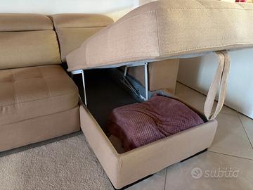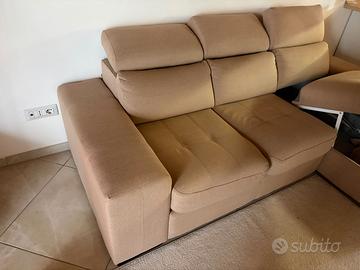 vendesi divano Made in Italy Marca PM Divani di colore shore Salmon con poggiatesta regolabili e cassetto contenitore lato penisola. Sfoderabili solo i poggiatesta. Misure 240x100x40 Prezzo leggermente trattabile, ritiro a carico dell'acquirente.