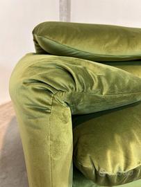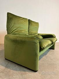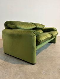 plendido divano Maralunga a 2 posti, un’icona del design italiano disegnata da Vico Magistretti per Cassina nel 1973, vincitore del prestigioso Compasso d’Oro nel 1979 e parte della collezione permanente del MoMA di New York. Questo divano, con dimensioni di 168 cm (lunghezza) x 95 cm (profondità) x 72/100 cm (altezza, con poggiatesta regolabile), è stato completamente ritappezzato in un elegante velluto verde e sottoposto a un restauro professionale, inclusi gli imbottiti, per riportarlo al suo splendore originale. Contraddistinto dal marchio Cassina, questo pezzo rappresenta un connubio perfetto di comfort, innovazione e raffinatezza, ideale per chi cerca un elemento d’arredo di lusso senza tempo.