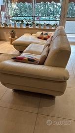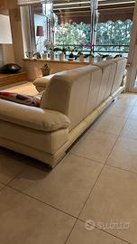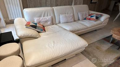 Divano in pelle 4 posti comodi. 2,85 mt di ingombro. É un divano di qualità che ha 15 anni. Struttura perfetta e pelle integra. La seduta e lo schienale chaise longue (che é la più utilizzata) hanno un po’ ceduto come imbottitura e si vede nella foto. È utilizzabile ma ovviamente non é piu come fosse nuovo, infatti il prezzo è molto basso. Disponibile a Febbraio, ritiro a carico di chi lo compra. Cuscini colorati esclusi.