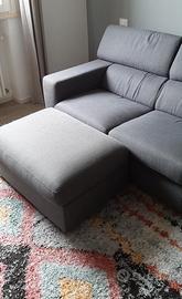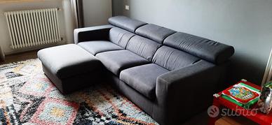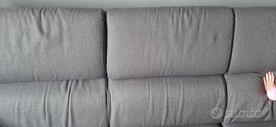 Divano marca Poltrone e Sofà grigio in tessuto, misure lungh 235 cm - profondo 100 cm in buono stato, schienale reclinabile, incluso poof