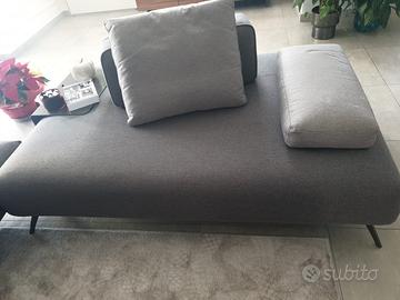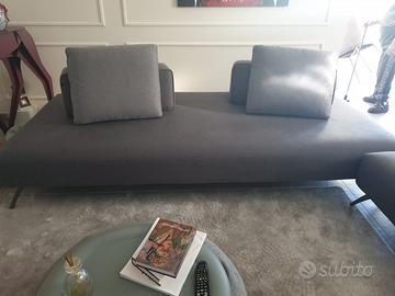 Praticamente nuovo. Due complementi in tessuto: il primo 2,50 x 1,10, il secondo 1,70 x 1,10. Piedi in acciaio cromato grigio. Completo di cuscini e con spalliere mobili per consentire diverse disposizioni delle sedute. Si adatta a qualsiasi posizione ed abbinamento: fianco muro, centro stanza, può essere disposto a L (come in foto), a T anche in posizione chaise longue ma anche completamente divisi, in quanto i due complementi sono interamente rifiniti. Ritiro a carico dell’acquirente