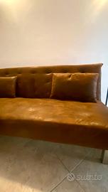 Divano 3 posti di un bellissino colore marrione scuro con cuscini abbinati con schienale reclinabile e diventa letto , tessuto effetto pelle camoscio , morbido e di gran effetto . Misure divano 180 x 70 aperto letto 180’x 110 . Evidenzio piccola scucitura che non compromette ne l uso ne l estetica Disponibile a Ferrara , piano terra , solo consegna , no spedizione , contattemi per altre foto o info !! Tenuto quasi sempre coperto ,no fumatori no animali