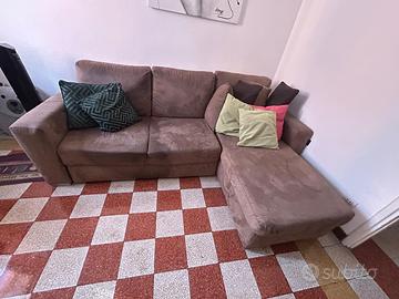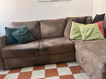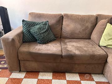 Vendo divano marrone in tessuto effetto camoscio, con contenitore.