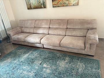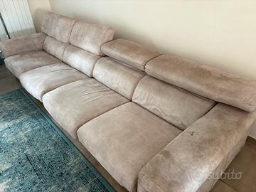 Vendesi divano Poltrone e Sofà, in microfibra colore beige , 3,30 mt composto da 2 pezzi anche divisibili (vedi foto ) con 4 poggia testa regolabili a piacere , sfoderabile e lavabile .