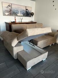 Divano di colore sabbia in micfrofibra.