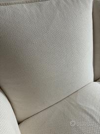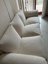 Divano tre posti in ottime condizioni, in cotone completamente sfoderabile e lavabile in lavatrice. Composto da sei cuscinoni più base in legno. Ritiro su Gorgonzola (MI)