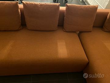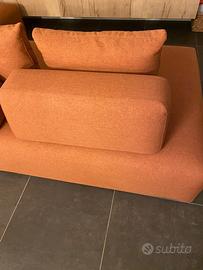 Vendo divano composto da due parti complementari che si possono staccare di 190x110. Comprende schienali e cuscini che si possono posizione a proprio piacimento. Color cognac. Nuovo. MADE IN ITALY