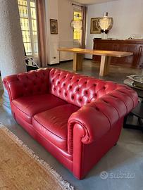 Divano in pelle, modello chesterfield a due posti