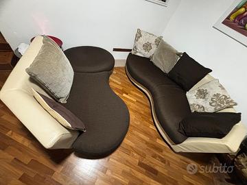 struttura in pelle con seduta e cuscini in tessuto sfoderabile, divano angolare con possibilitá cambiare disposizione, come mostrato dalla foto + pouff. divano usato ma ben tenuto