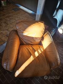 Divano in pelle modello Piumotto di Arrigo Arrigoni per Busnelli anni 70, pelle color cognac, scocca in plastica nera marchiata, volendo disponibili anche le due poltrone e il tavolino (vedi foto)