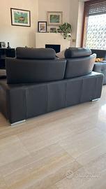 Vendesi splendido divano moderno a 2 posti grandi, rivestito interamente in vera pelle di alta qualità color marrone scuro (testa di moro). Il divano si distingue per le linee pulite e geometriche, perfette per un ambiente contemporaneo o industrial. Materiale: Vera pelle, molto morbida al tatto, robusta e di facile manutenzione. Poggiatesta Reclinabili: I due poggiatesta sono reclinabili in diverse posizioni, garantendo il massimo comfort cervicale e una linea slanciata quando abbassati. Design e Finiture: Imbottiture generose e avvolgenti. Piedini di design in metallo cromato lucido. Le cuciture a contrasto color ambra mettono in risalto la qualità sartoriale del pezzo. Smontaggio e trasporto a carico dell'acquirente.