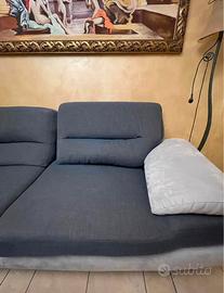 Divano moderno bicolore con pouf – Comodo e in buone condizioni