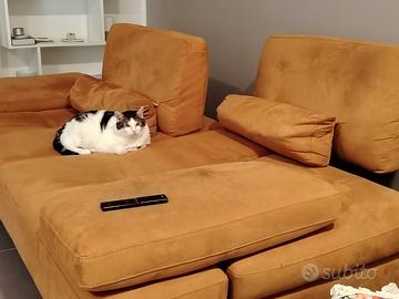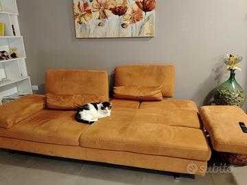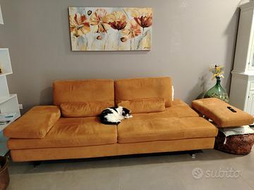 Vendesi divano Federici, tre anni di vita, come nuovo. Misure 228x110 cm. I poggioli si aprono lateralmente aumentando I posti a sedere da 3 comodi, a 5 o addirittura 6. I due schienali, all'occorrenza, traslano indietro, trasformando il divano in comodo letto o per permettere di sdraiarsi comodamente. Il tessuto è sfoderabile.